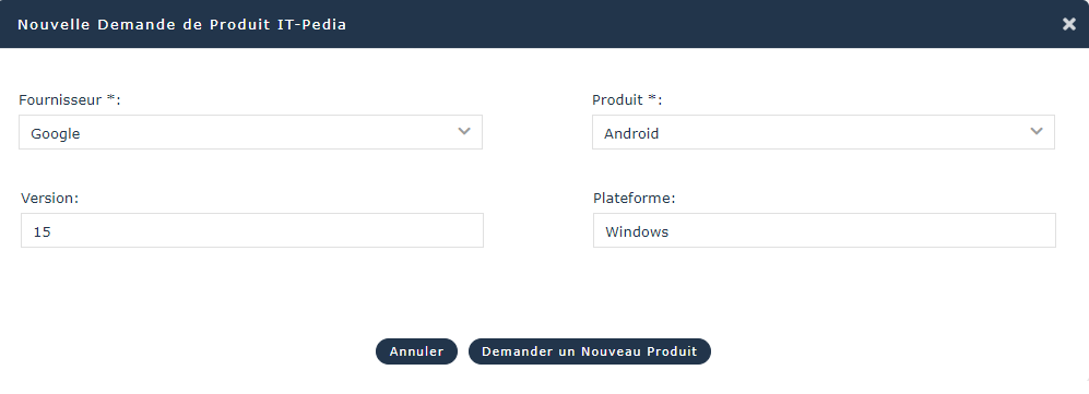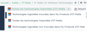 • les technologies logicielles non trouvées dans My Products d'IT-Pedia