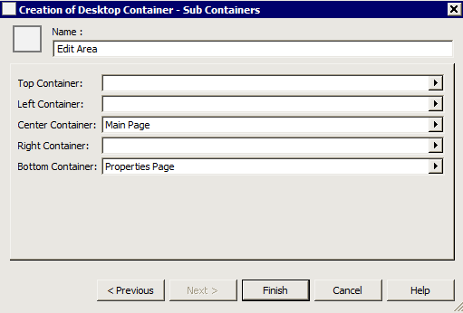 • Bottom Container creation wizard ("Properties Page") of Desktop Container ("Edit Area").