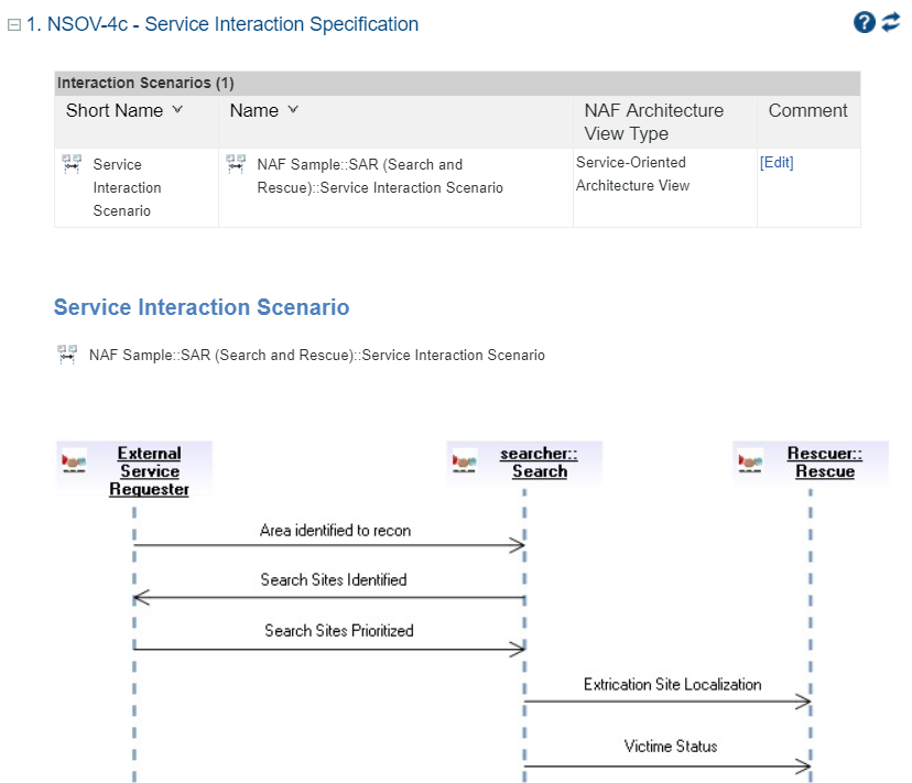 A service interaction scenario is used to describe a service use case. It presents the sequence of message instances exchanged between service instances during the execution of the scenario.Example of report