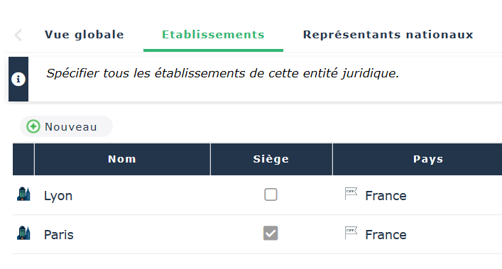 Lorsque vous créez plusieurs établissements, vous devez spécifier lequel représente le siège.