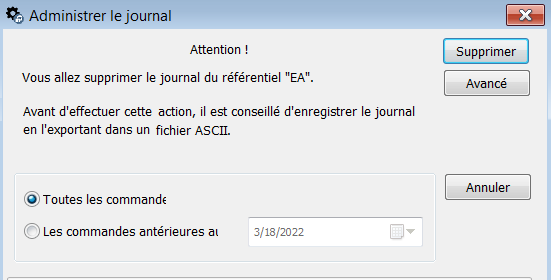 supprimer toutes les commandes du journal antérieures à une date sélectionnée