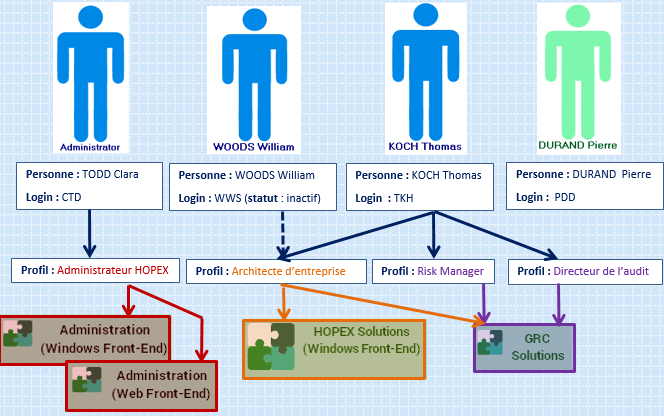 • Thomas KOCH a un login et les profils Architecte d'Entreprise, Risk Manager et Directeur de l'audit d'assignés :